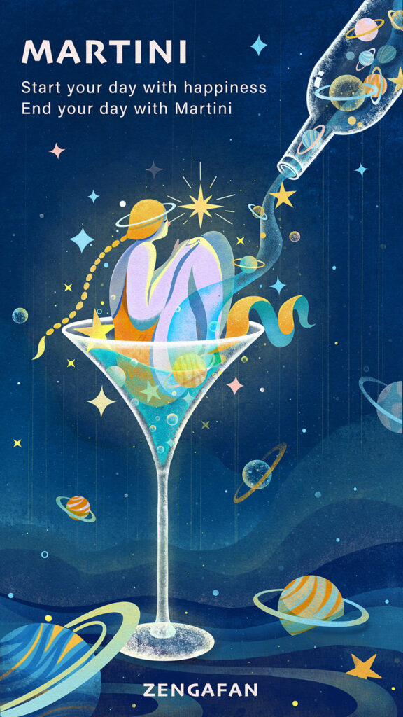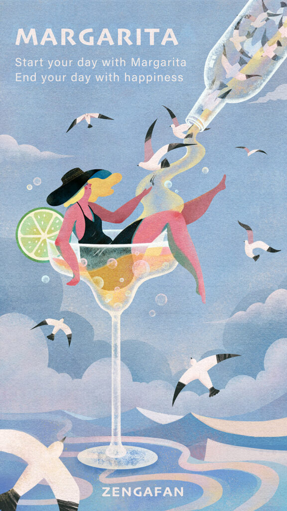 This series is based on three cocktails that I like. I designed a character for each of them with different natural elements.