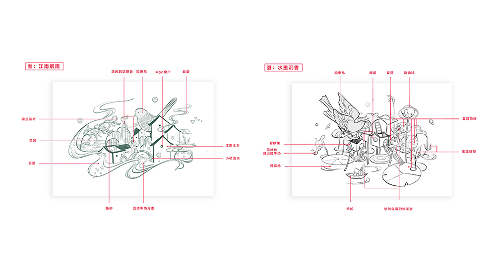 I created a series of illustrations that captures the essence of the four seasons for a milk tea brand Youtuouchaming. It portrays people enjoying the picturesque scenery of each season while sipping on a comforting cup of milk tea.