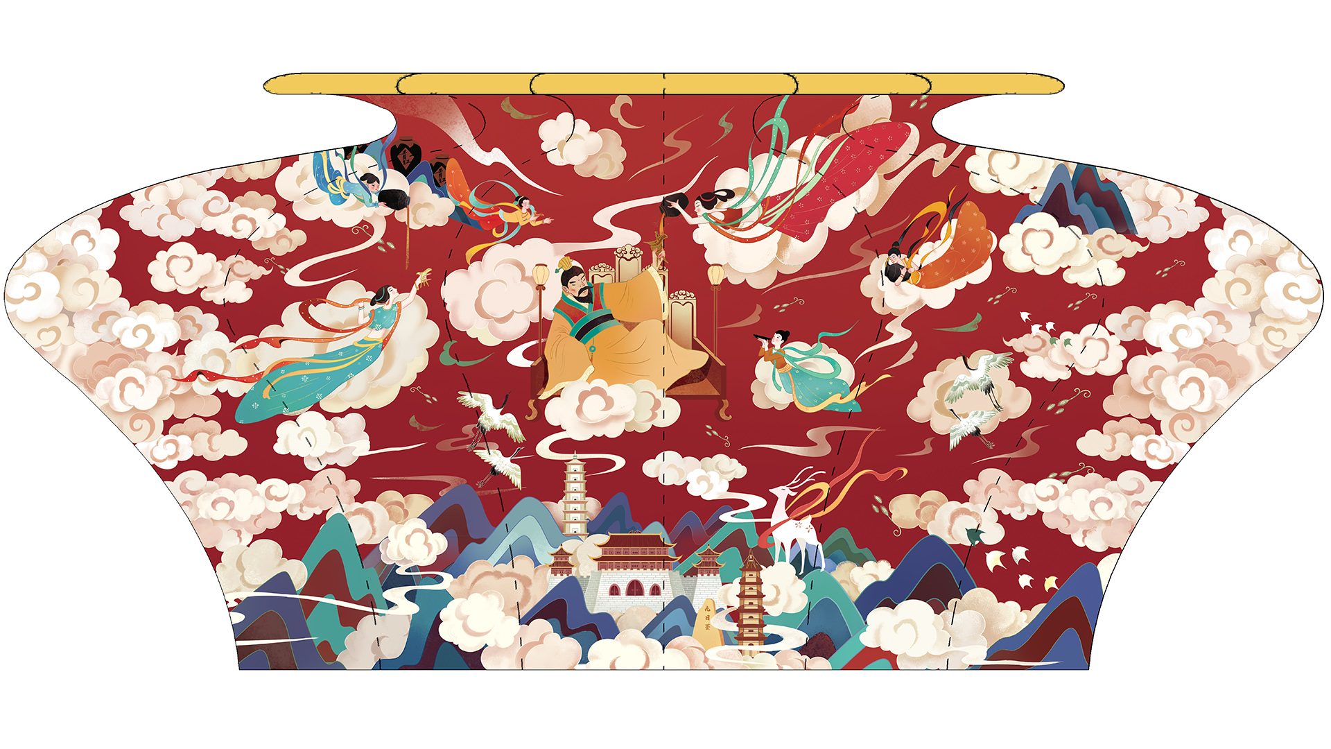 China Qinghong Wine Shop is a traditional Chinese wine shop. I created a series of illustrations featuring decorative patterns on vase sculptures within the interior, along with scenes depicting traditional Chinese wine culture and the winemaking process, designed as wall decor.