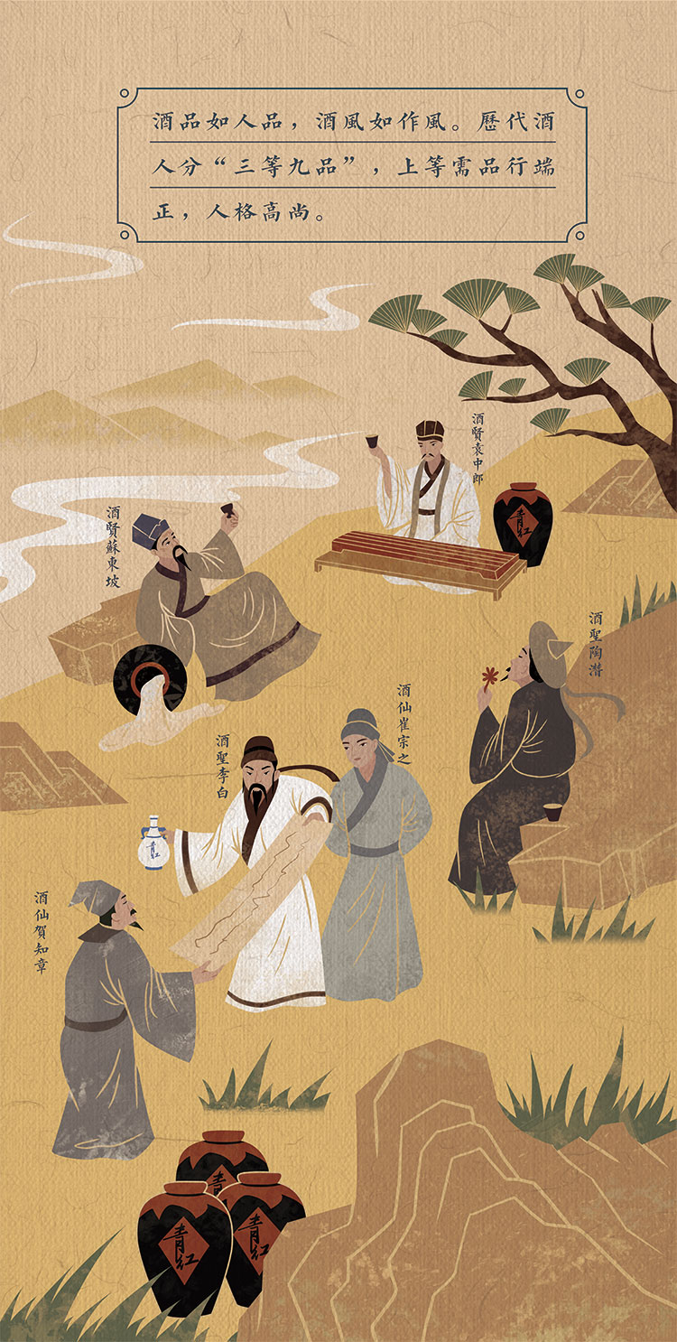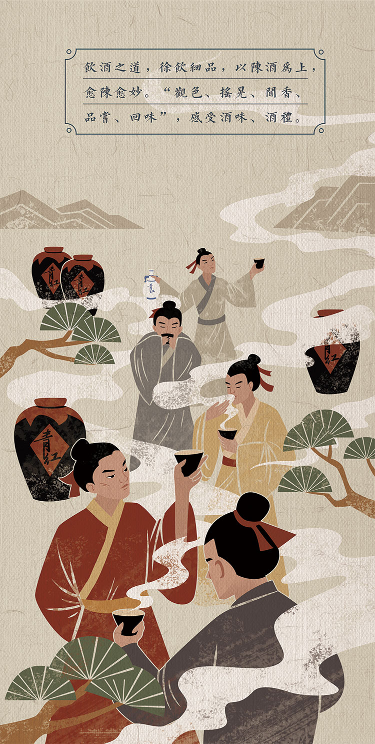Inspired by Chinese drinking culture, this series highlights its rich traditions. Using a vintage printmaking style, I illustrated the brewing process, the art of wine tasting, drinking games, and the tradition of composing poetry about wine. Through these illustrations, I hope to share and celebrate the heritage of Chinese alcohol culture.