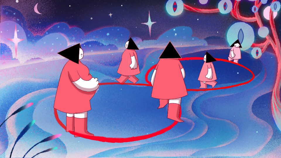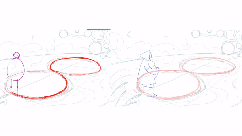 I started with simple stick figures to get the walking motion right. Then, I built on that to bring my characters to life.
